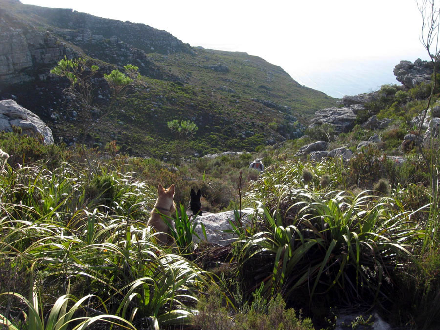 Today we had our human brother Philip with us (down here on busuness), as well as Lydia from New Zealand, as well as Philippe, recently from New Zealand but resident in Cape Town now. Paul and Pauline were there but Sue was still feeling a bit poorly and decided to give it a miss. And its altogether too populated for Maddy so she and Alicewent up Red Hill instead.