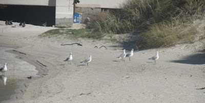 Hartlaubs and Grey-headed Gulls socializing in front of the Beachfront Informal Shelter for the Homeless and Drug-peddling Fraternity of Fish Hoek. All very peaceful.